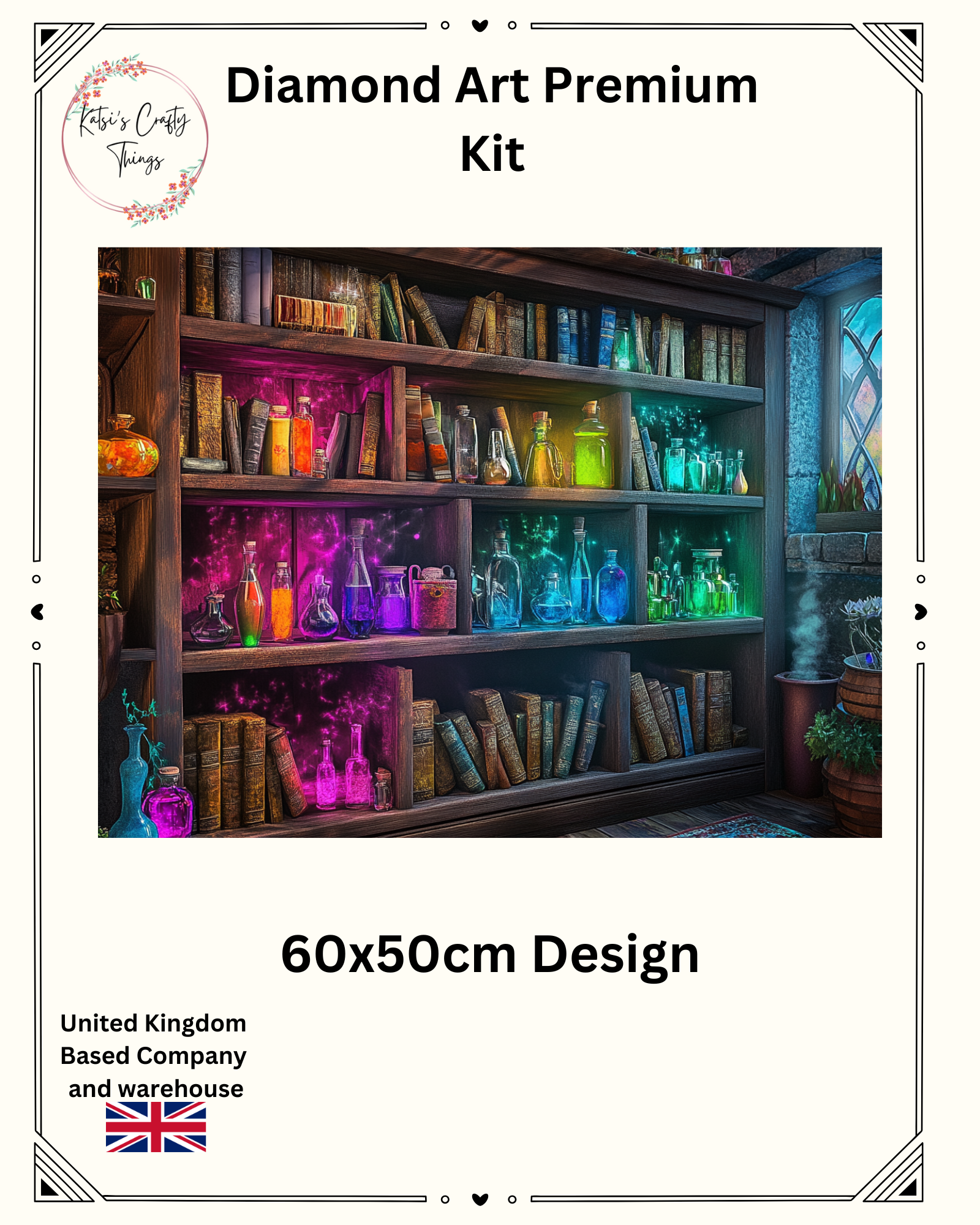 Diamond Painting Premium Kit - 60x50cm - Enchanted Bookshelf