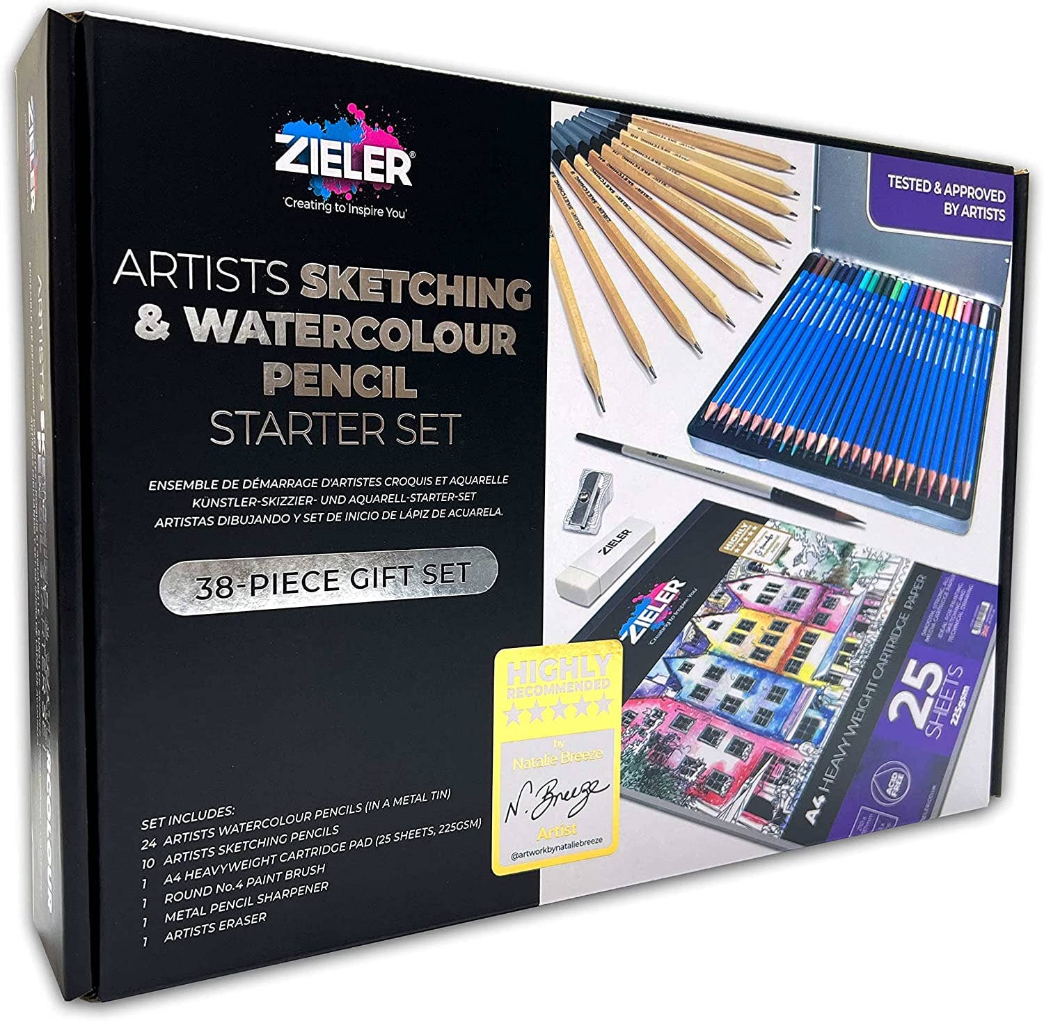 24 Artists Watercolour Pencils – Gift Tin Set – by Zieler