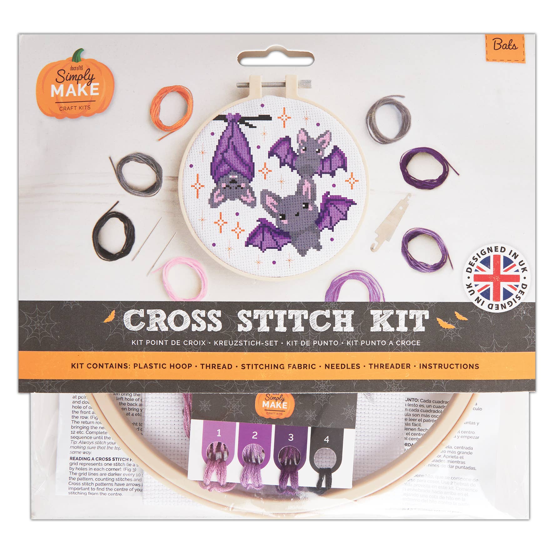 Simply Make Cross Stitch Kit Bat Design, Halloween, Hoop