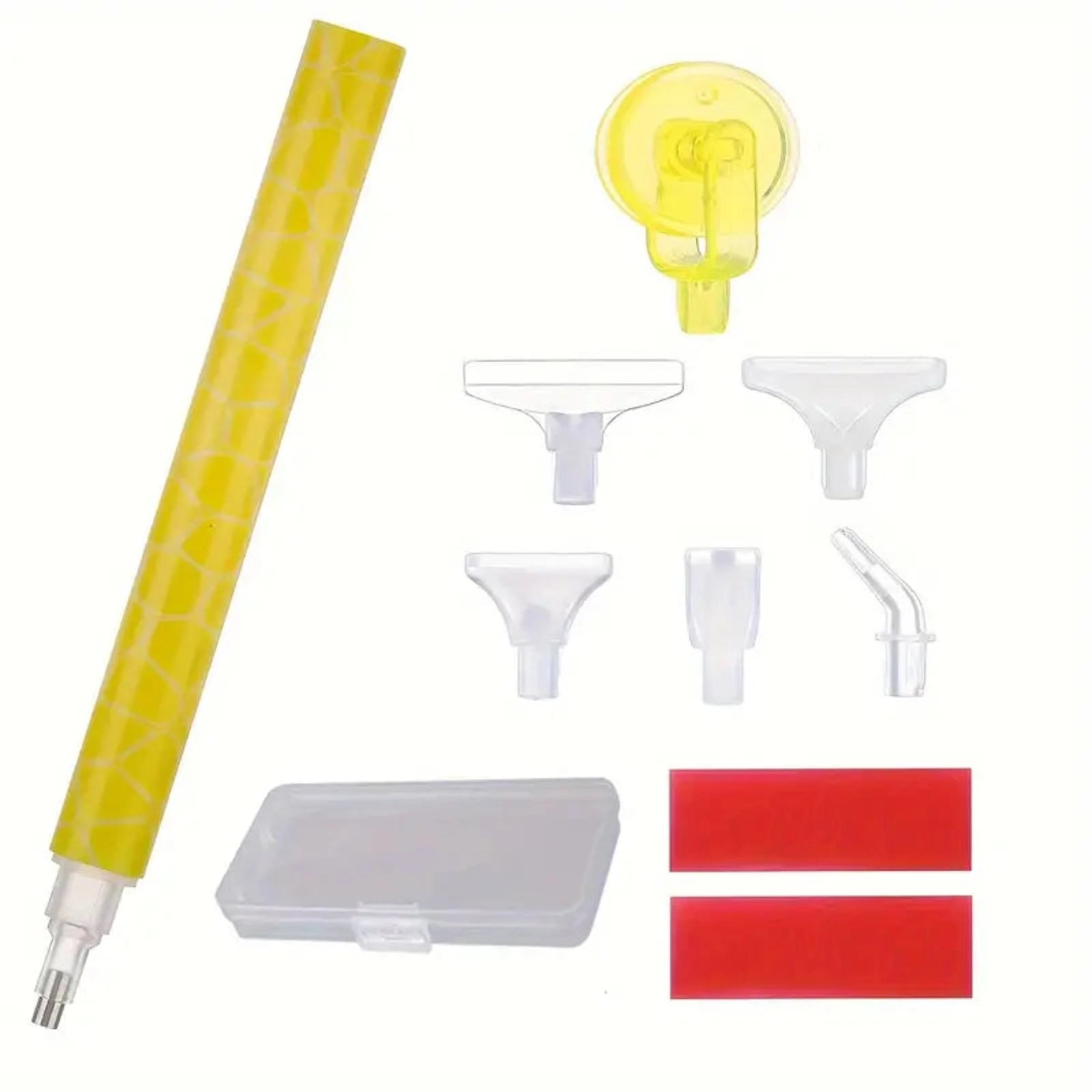 Diamond art pen kit. This comes in a box with 5 plastic pen tips, some wax, and the roller wheel. Great little starter kit! These come in a range of different colours so colours will vary. If you have a preference, please leave it in the notes and we will try our best to accommodate.