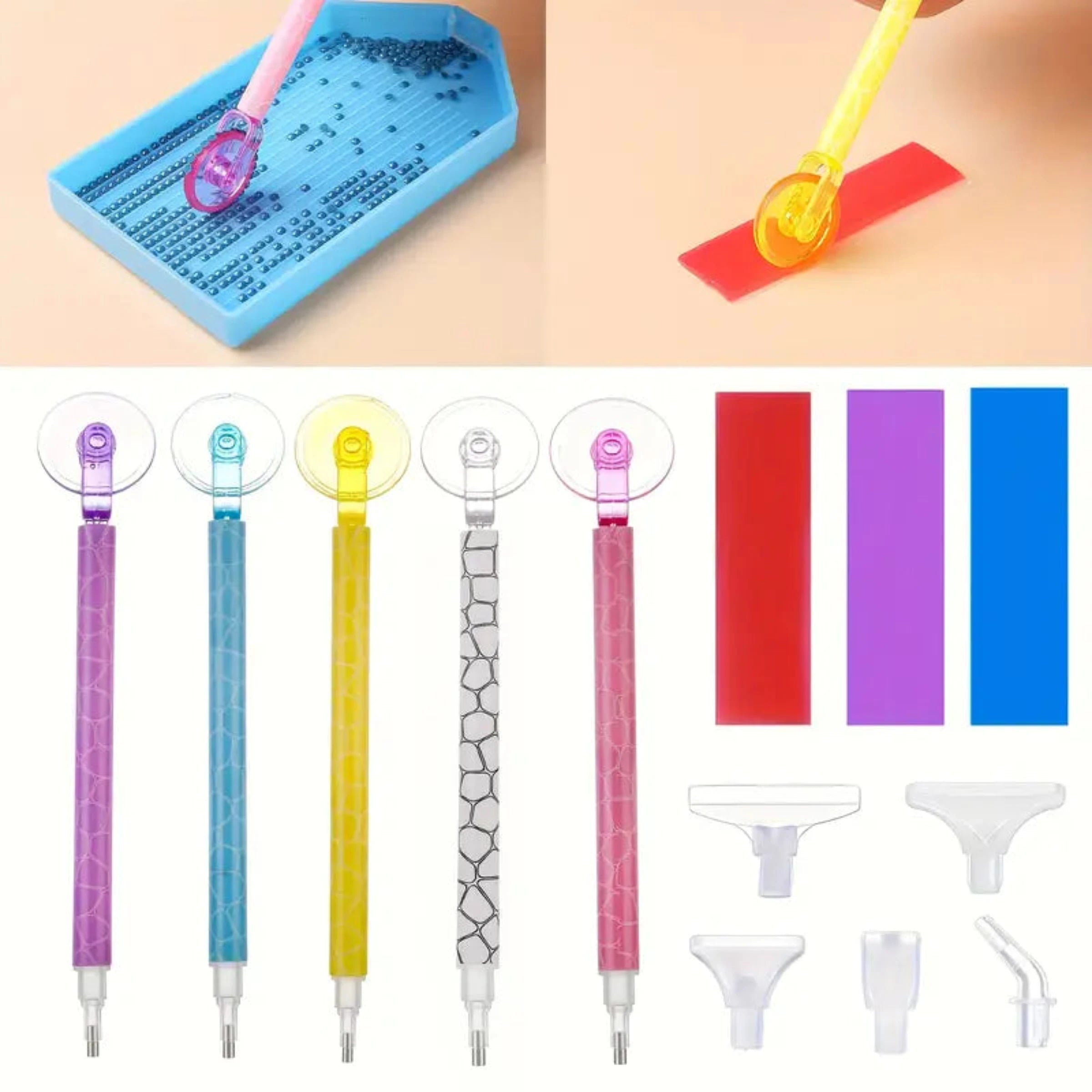 Diamond art pen kit. This comes in a box with 5 plastic pen tips, some wax, and the roller wheel. Great little starter kit! These come in a range of different colours so colours will vary. If you have a preference, please leave it in the notes and we will try our best to accommodate.