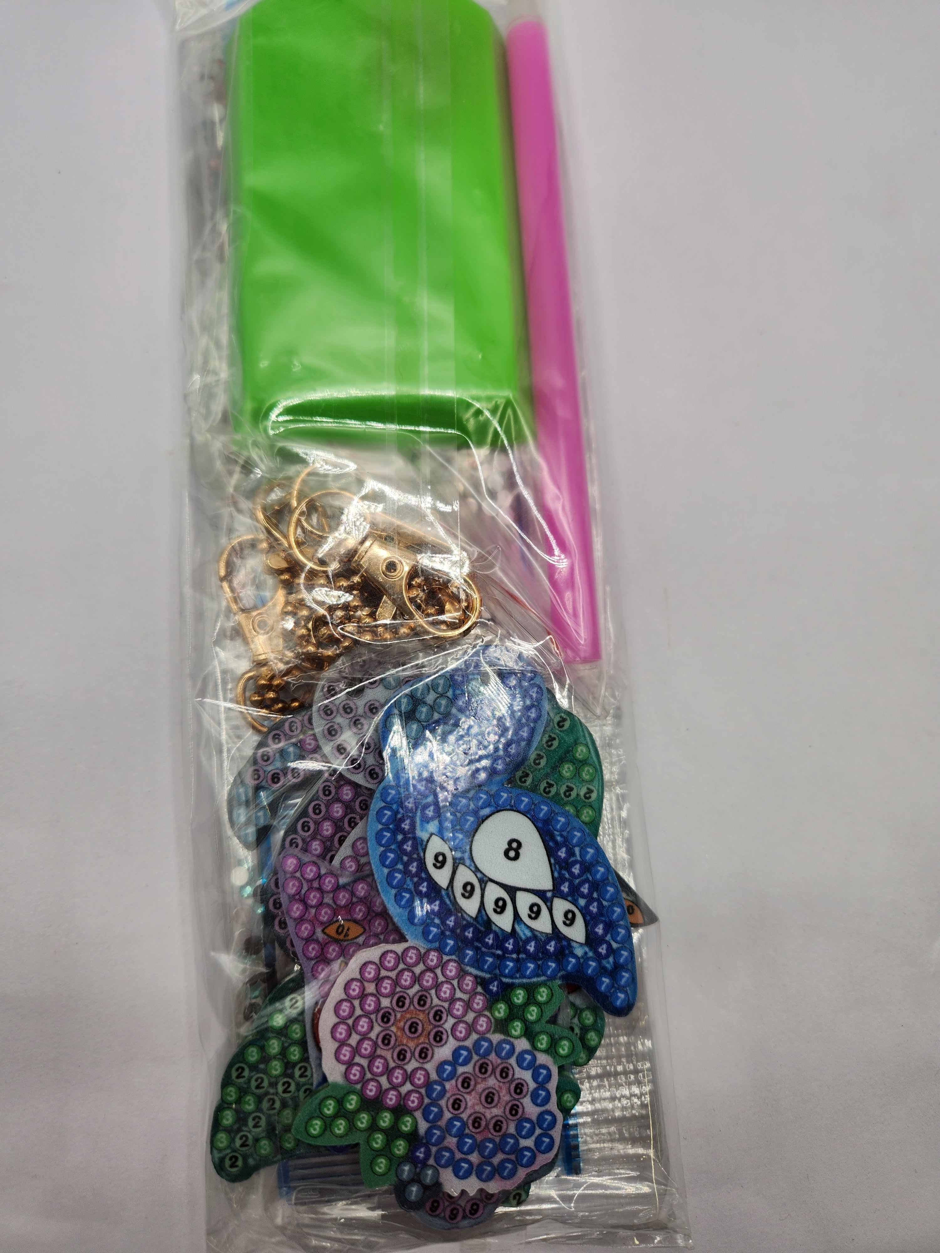 Double sided diamond art key ring set. Contains everything you need! Unleash your creativity with ease. This key ring set comes equipped with everything you need to create intricately designed diamond art pieces.