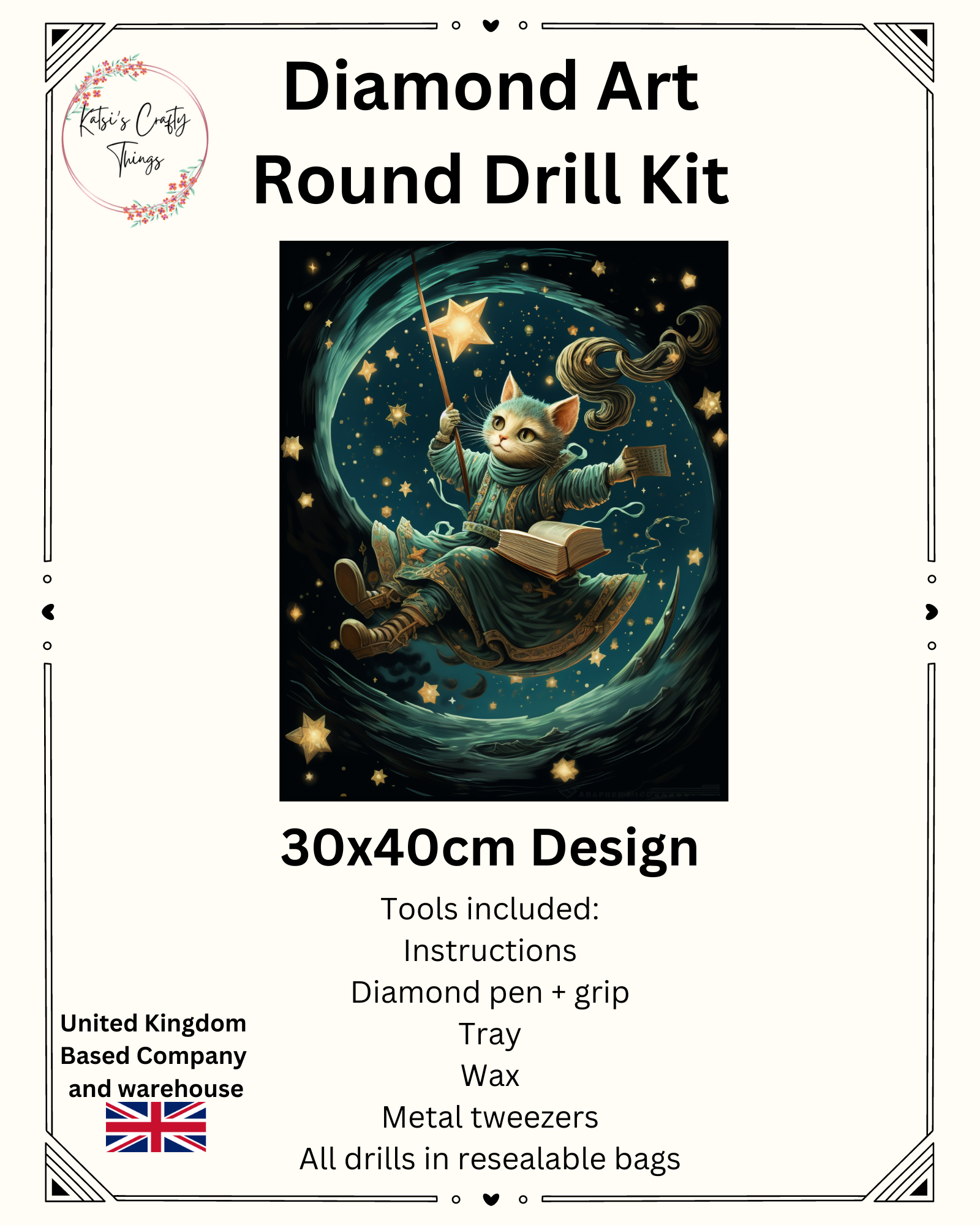 Full drill round diamond painting 30 x 40cm Included 1 x canvas Round diamonds Pen/Tray/Wax Create a stunning masterpiece with ease thanks to the included canvas, round diamonds, and essential tools like a pen, tray, and wax. Experience the joy and satisfaction of completing a full drill round diamond painting on a 30x40cm canvas and add a touch of beauty to any room in your home.