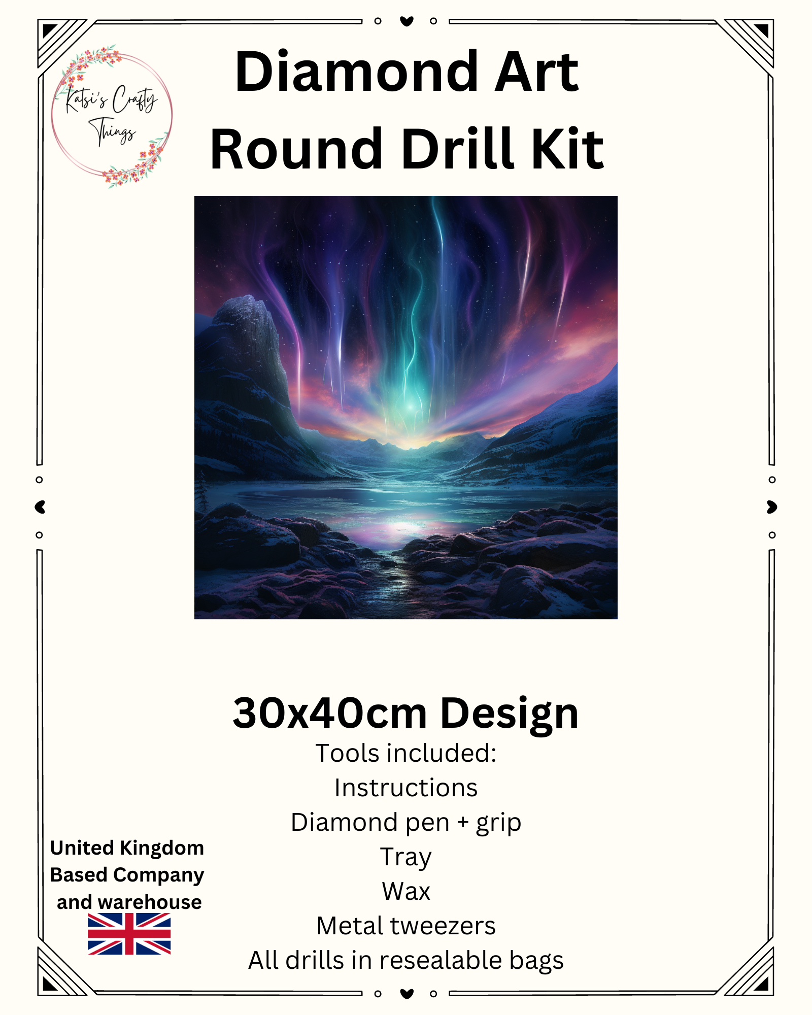 Experience the mesmerizing beauty of the Northern Lights with our 30x40cm Diamond Painting kit. This complete set includes everything you need - 1 canvas, round diamonds, a pen, tray, and wax - to create a stunning full drill masterpiece that will captivate your senses and inspire your creativity.