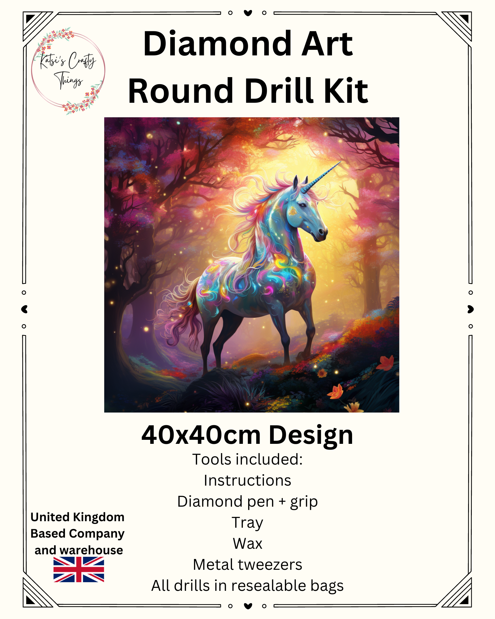 Unleash your creativity with this stunning Diamond Painting! Featuring a vibrant and unique Bright Unicorn design, this 40x40cm painting comes with 2 sets of AB drills for a sparkly finish. Perfect for adding a touch of magic to any room. Get yours now and let your imagination run wild!