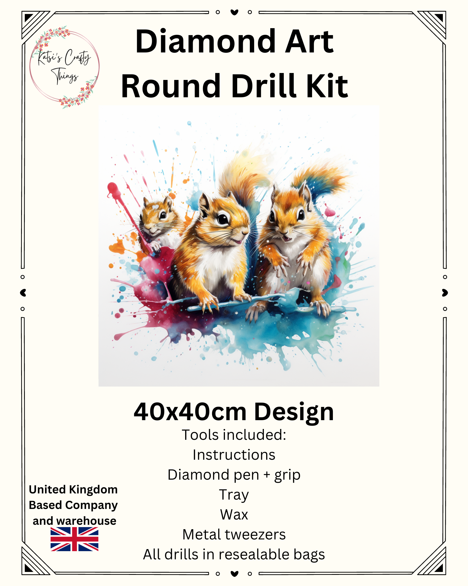 Full drill round diamond painting 40 x 40cm Included 1 x canvas Round diamonds/AB Drills Pen/Tray/Wax Experience the joy of creating a stunning work of art with our Diamond Painting kit! Unwind and relax as you place each dazzling diamond onto the high-quality 40x40cm canvas. With everything you need included, from the round diamonds and AB drills to the pen, tray, and wax, you'll have a seamless and enjoyable creative process. Get ready to have your senses come alive with this colourful and satisfying project!