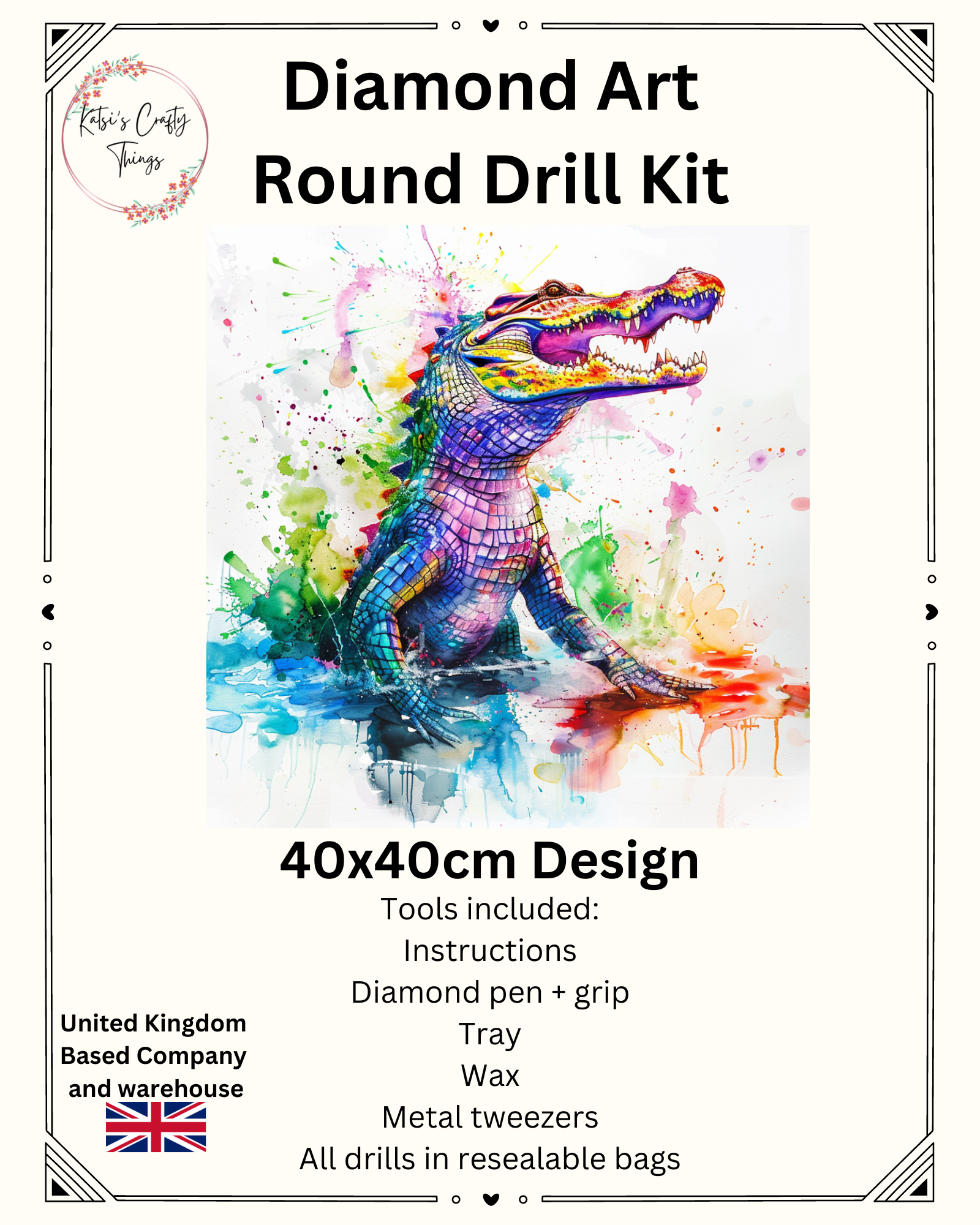 Diamond Painting - 40x40cm - Colour Splash Crocodile (AB Drills)