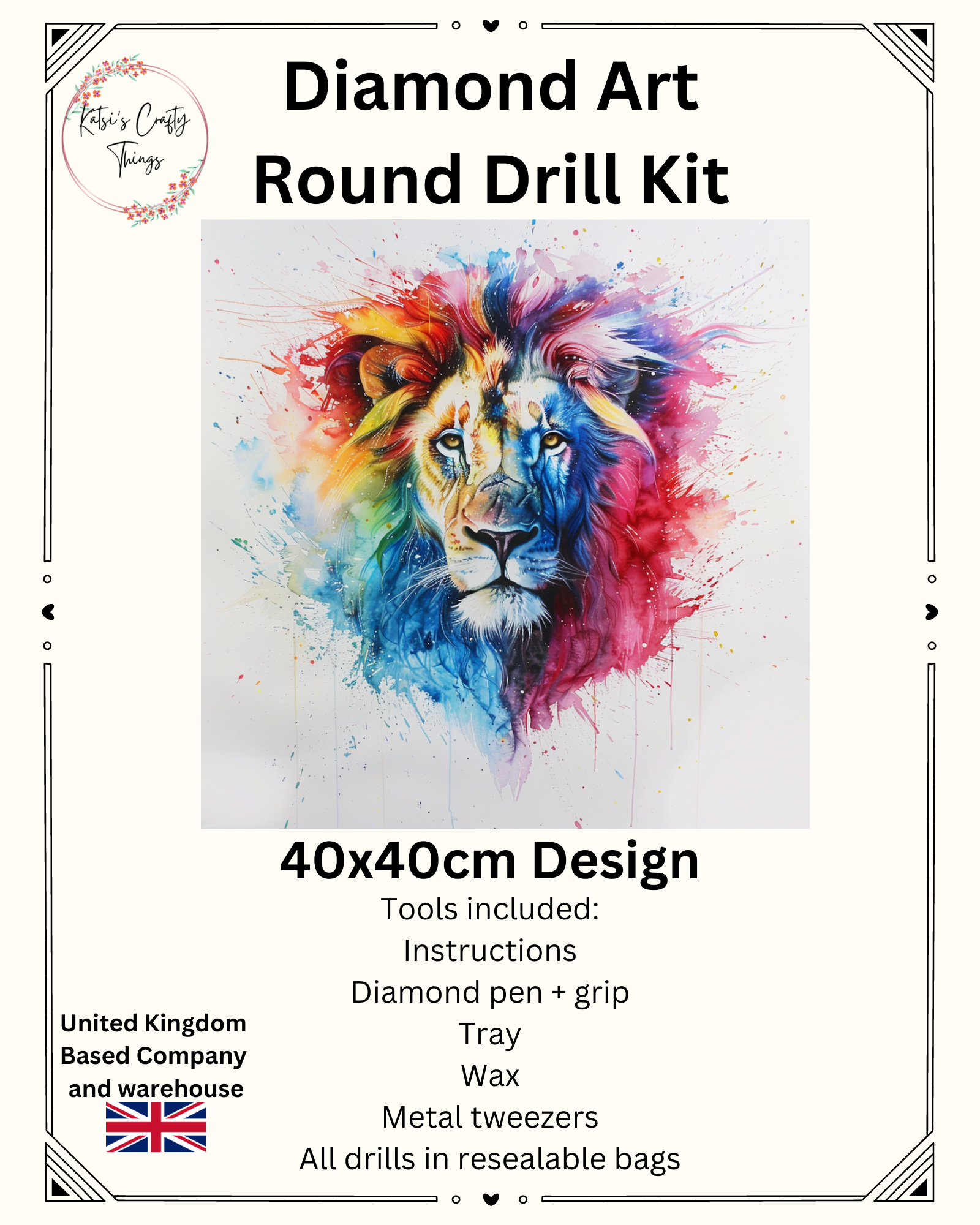 Diamond Painting - 40x40cm - Colour Splash Lion Face (AB Drills)