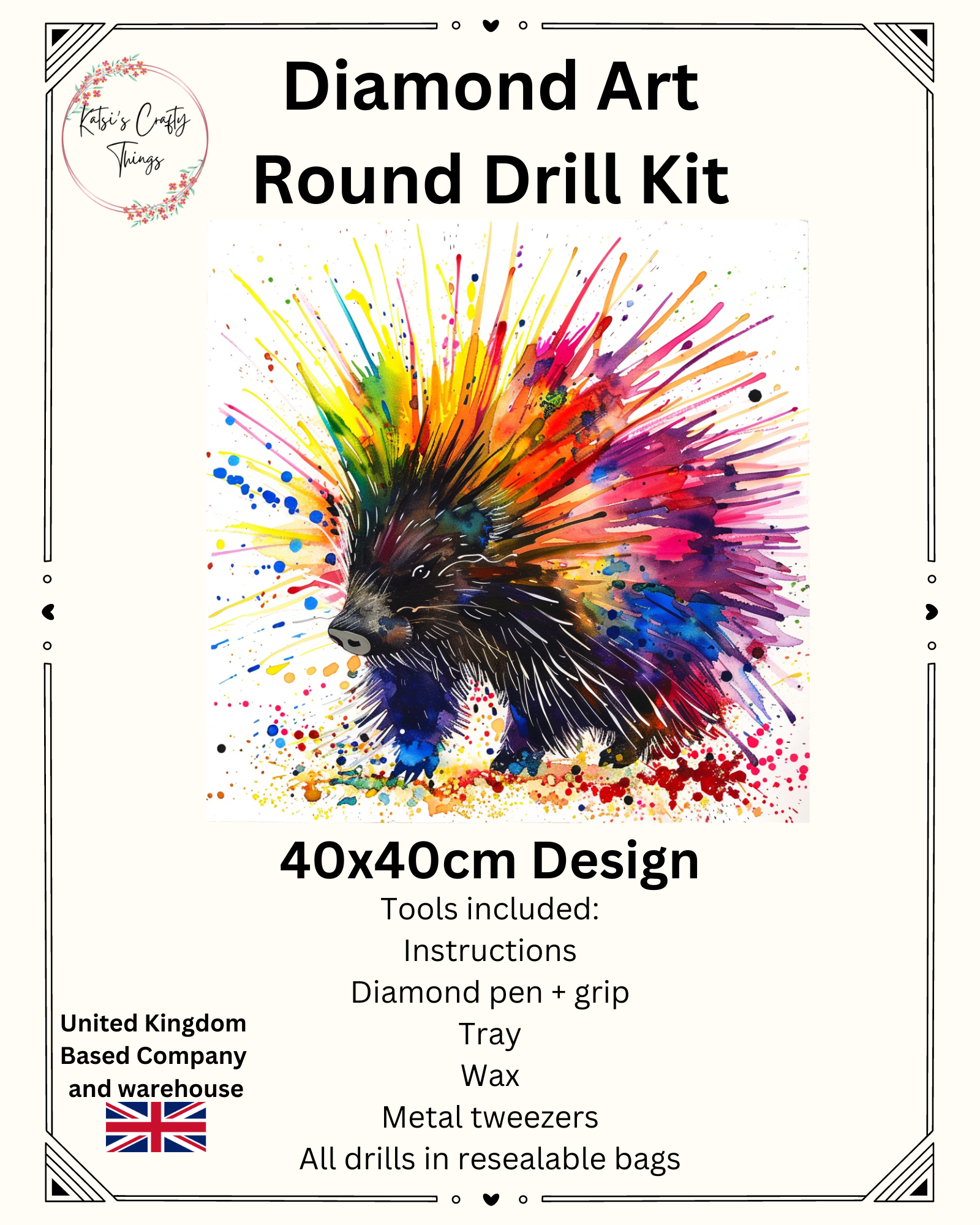 Diamond Painting - 40x40cm - Colour Splash Porcupine (AB Drills)