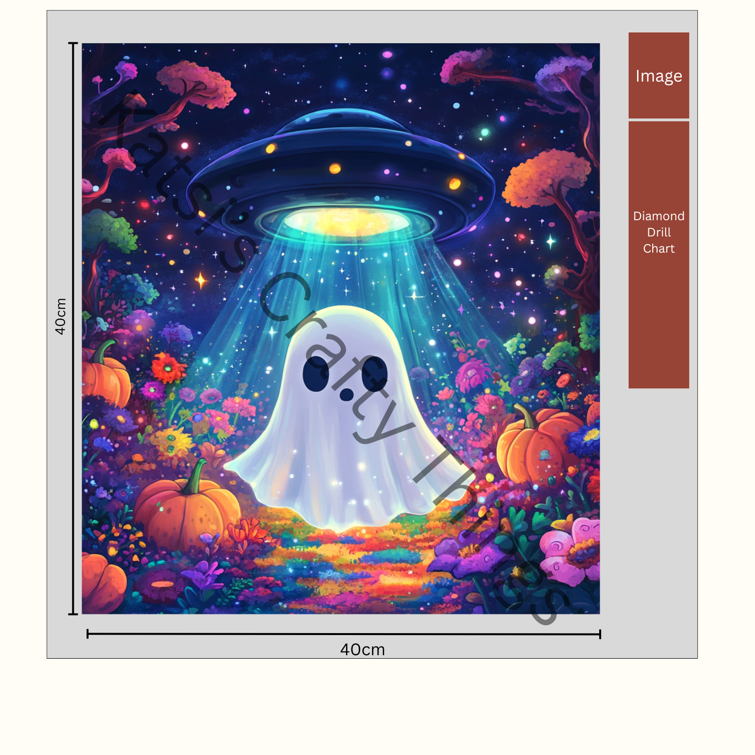 This is designed by Katsi's Crafty Things. All of our kits contain a tool kit including tray, pen, tweezers and wax, all of the diamonds (plus extra), and a true to size canvas using poured glue.