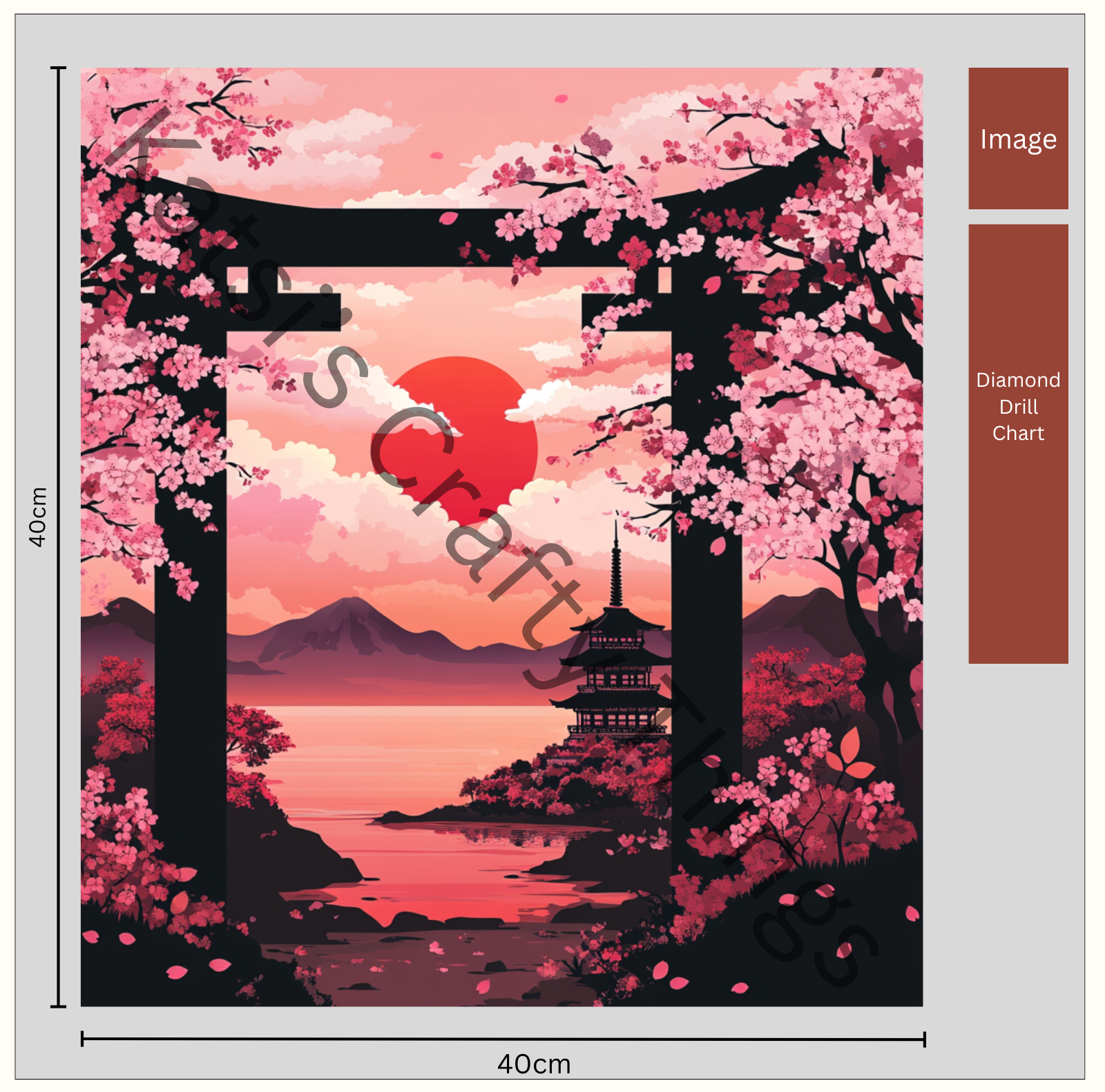 Diamond Painting - 40x40cm - Japanese Sun (2 Fairy Dust)