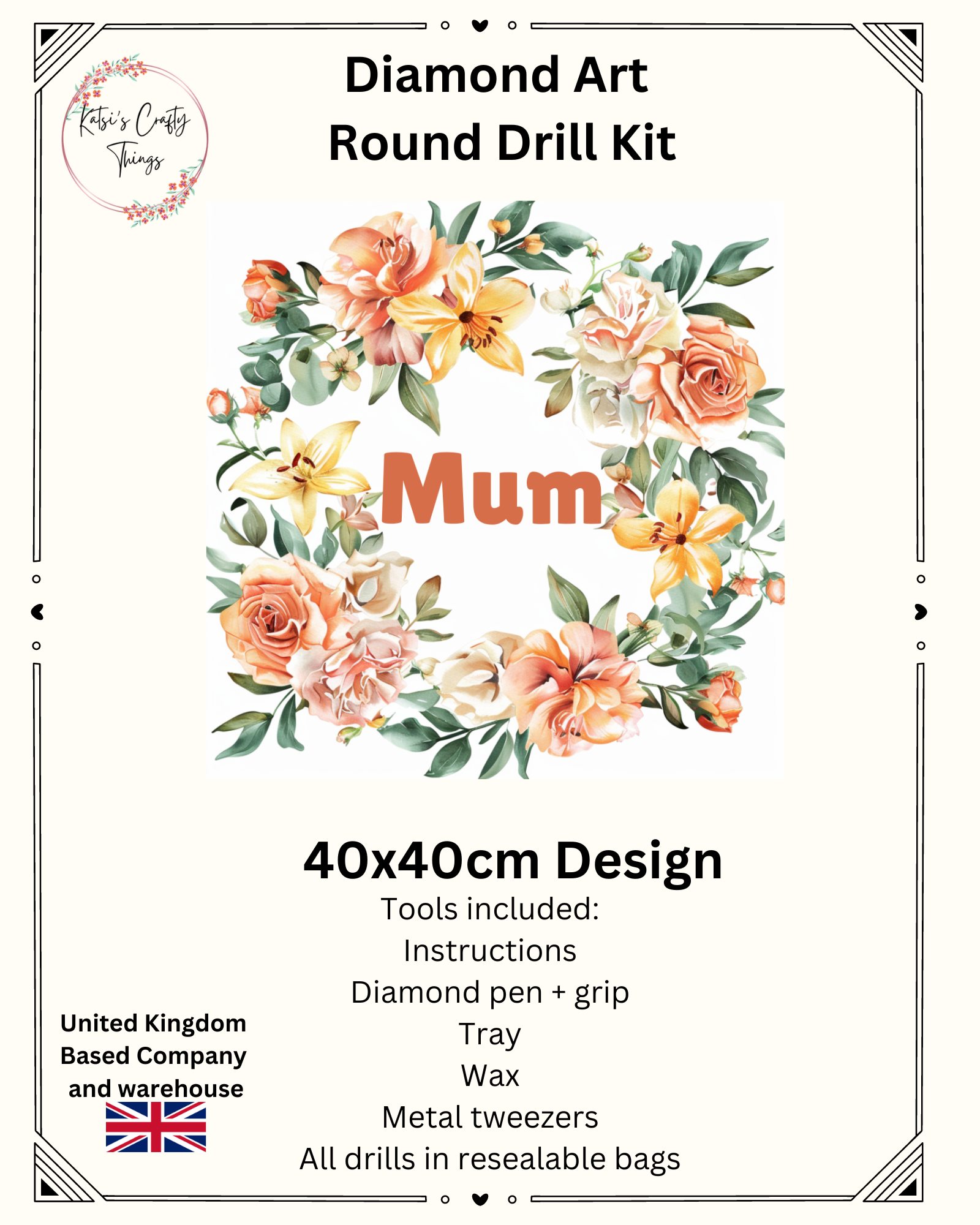 Diamond Painting - 40x40cm - Mum Wreath (AB Drills)