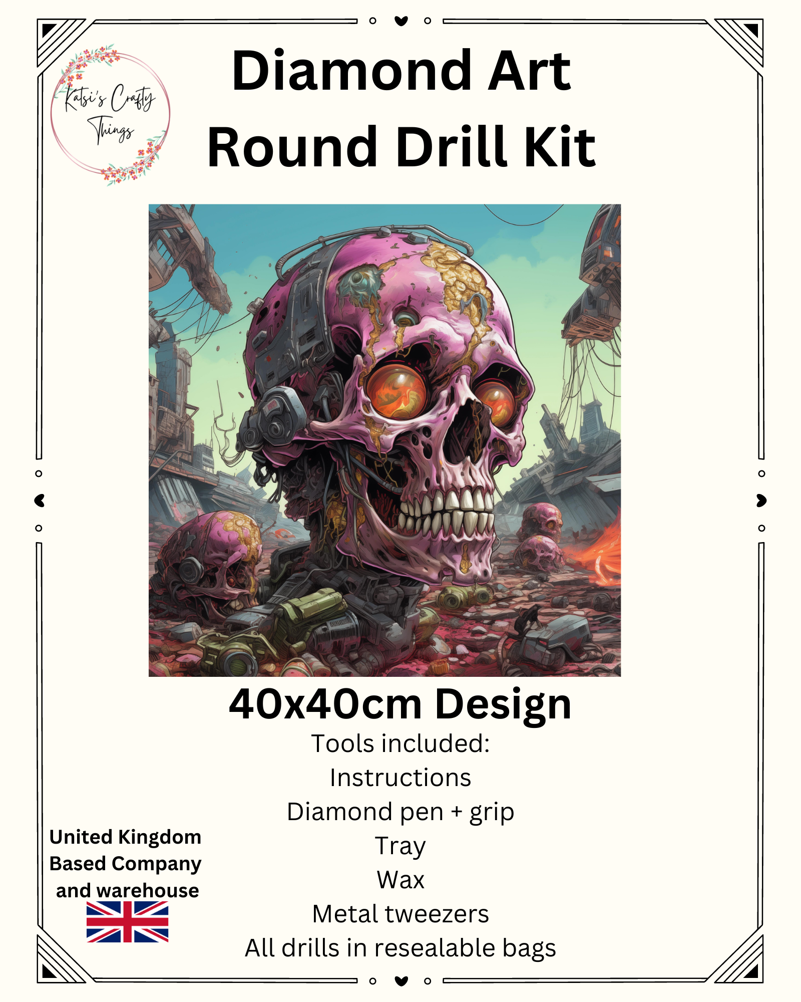 Full drill round diamond painting 40 x 40cm Included 1 x canvas Round diamonds Pen/Tray/Wax Transform a blank canvas into a stunning work of art with this Diamond Painting kit! With everything you need to get started, including high-quality round diamonds and essential tools, you'll have the perfect way to relax and express your creativity. And at 40 x 40cm, this project is the perfect size to display and admire. Let your inner artist shine with Diamond Painting - Psychedelic Skull!