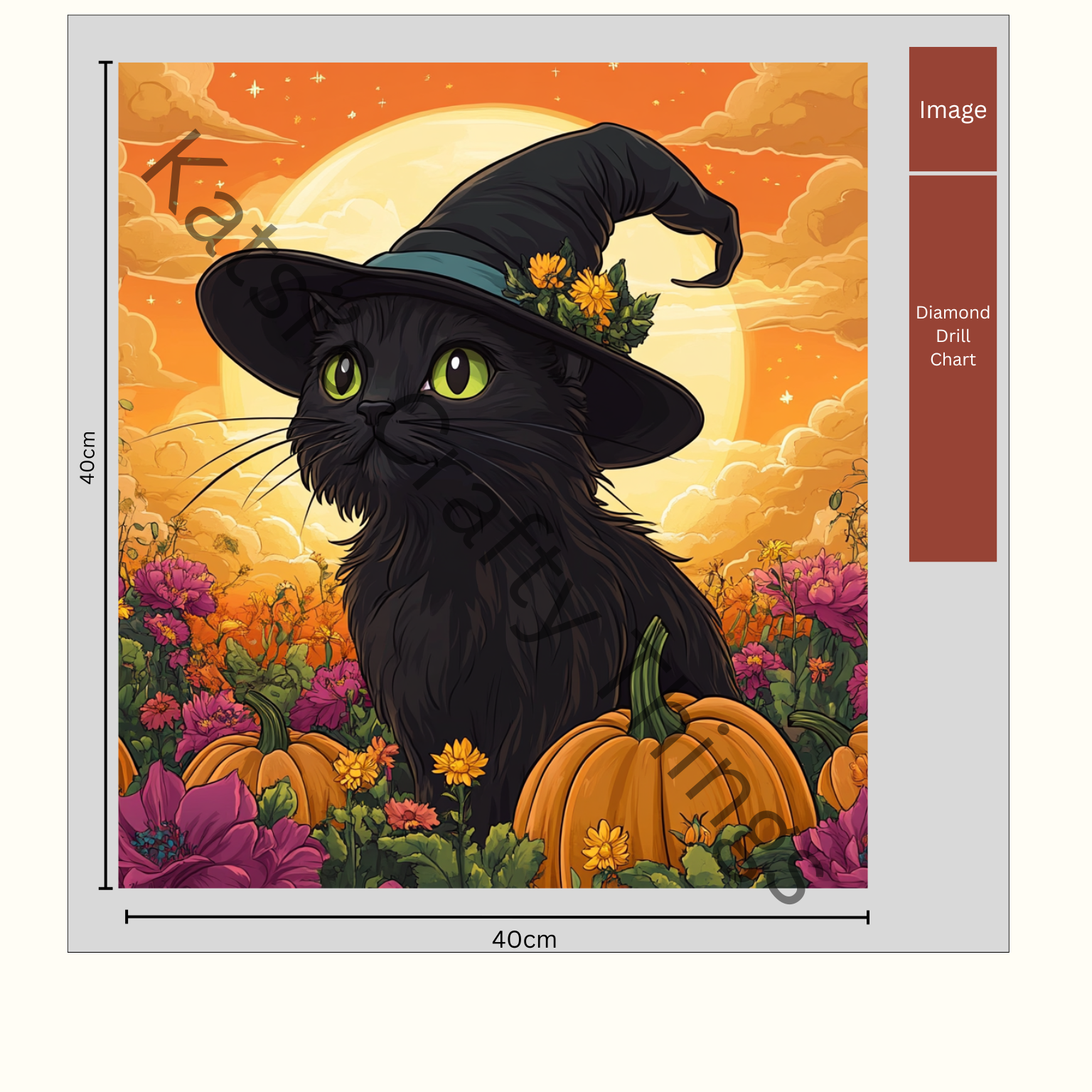 This is designed by Katsi's Crafty Things. All of our kits contain a tool kit including tray, pen, tweezers and wax, all of the diamonds (plus extra), and a true to size canvas using poured glue.