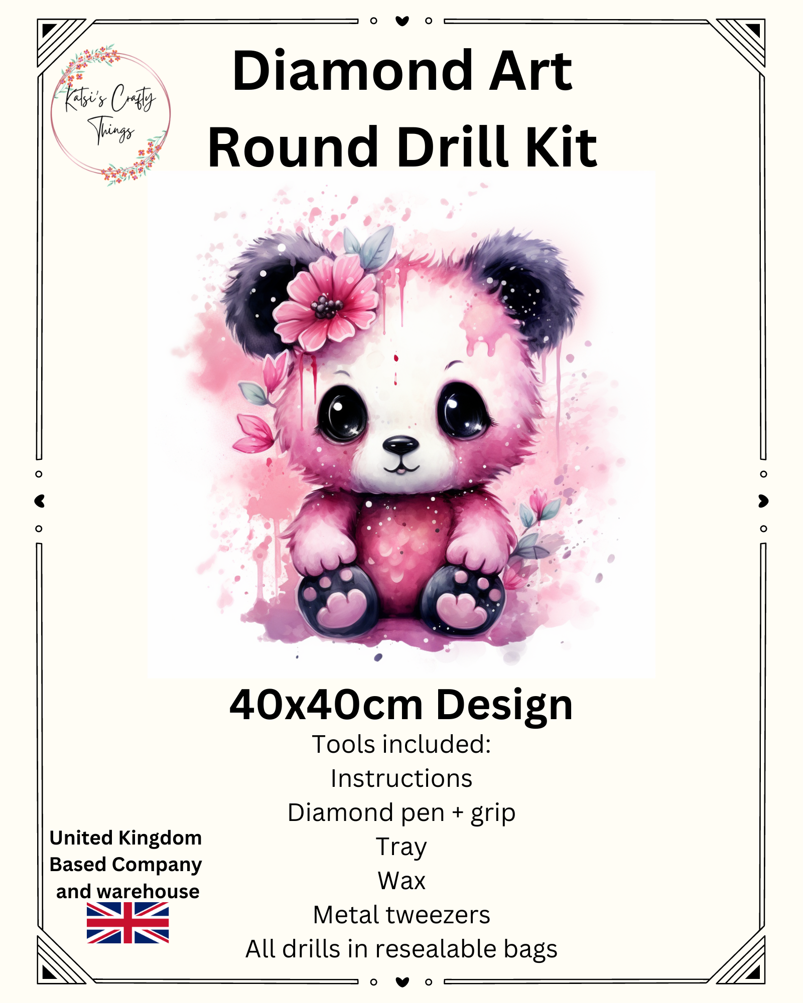 Full drill round diamond painting 40 x 40cm Included 1 x canvas Round diamonds Pen/Tray/Wax Transform a blank canvas into a stunning work of art with this Diamond Painting kit! With everything you need to get started, including high-quality round diamonds and essential tools, you'll have the perfect way to relax and express your creativity. And at 40 x 40cm, this project is the perfect size to display and admire. Let your inner artist shine with Diamond Painting - Watercolour Panda Red and Pink Splash!