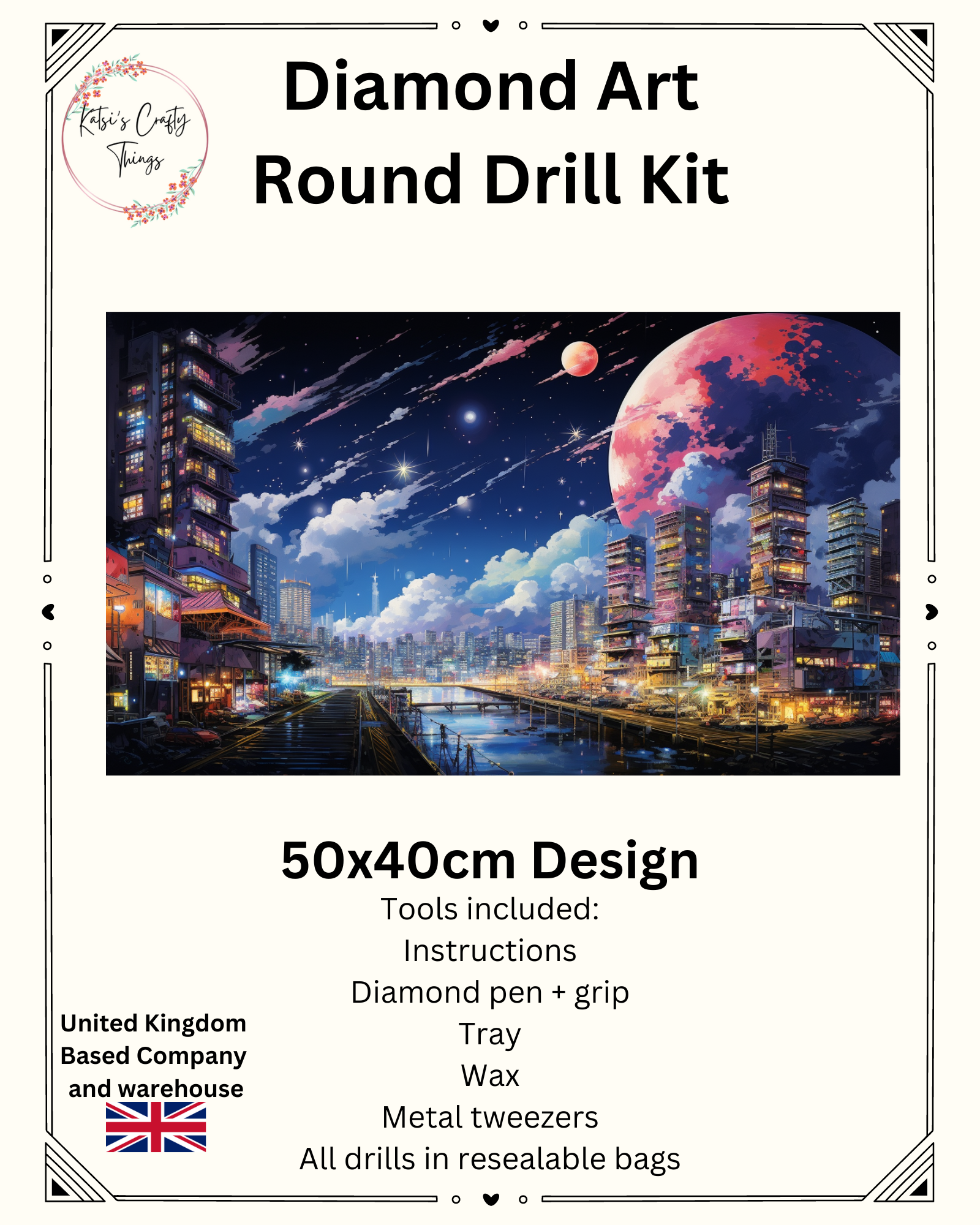 Full drill round diamond painting 50 x 40cm Included 1 x canvas Round diamonds Pen/Tray/Wax Experience the joy of creating a stunning work of art with our Diamond Painting - 50x40cm. This complete set includes everything you need - a 1 x canvas, sparkling round diamonds, a diamond pen, tray, and wax. Get lost in the process and emerge with a masterpiece!