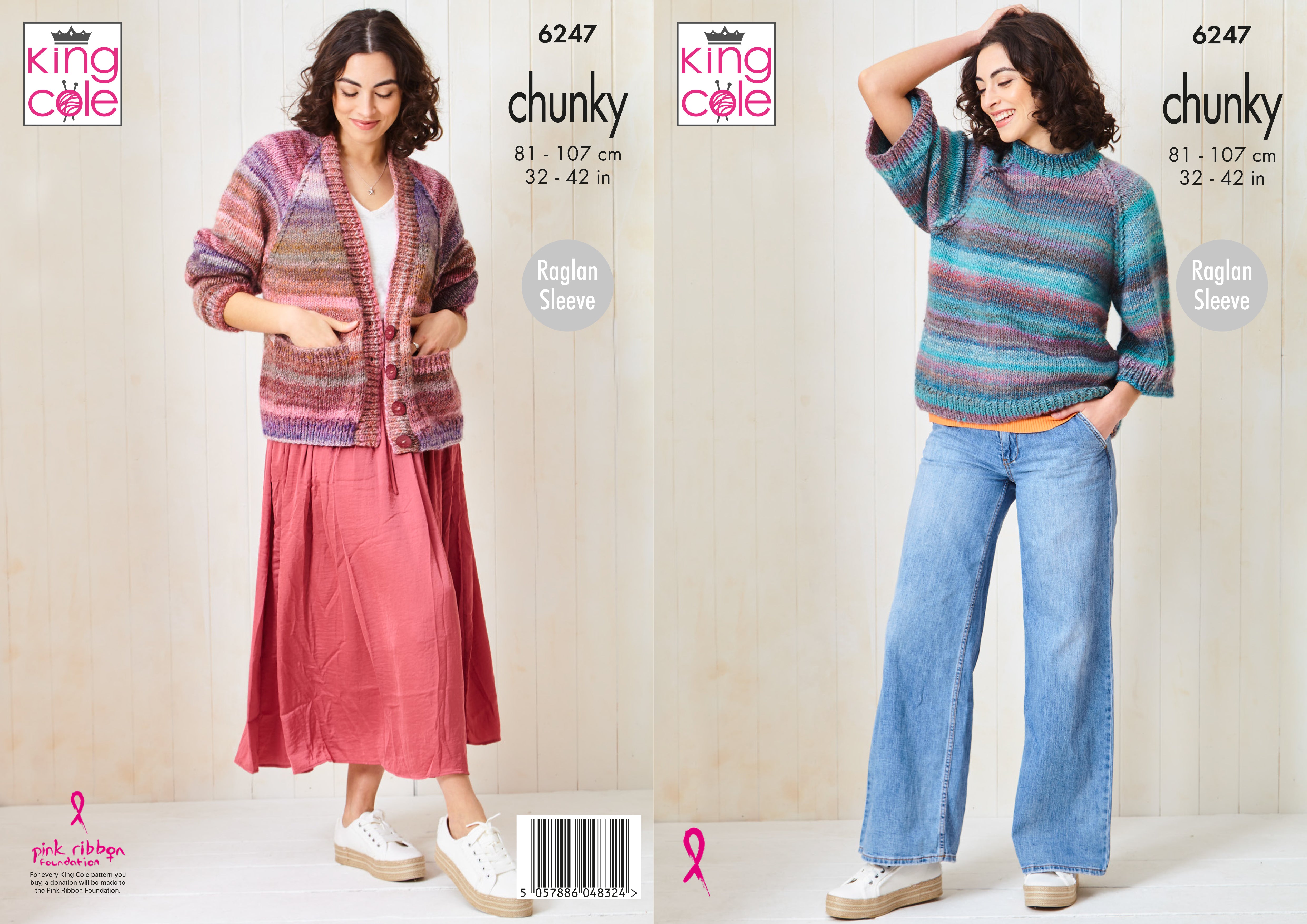 King Cole Pattern - 6247 Raglan Sleeve Jumper and Cardigan Chunky
