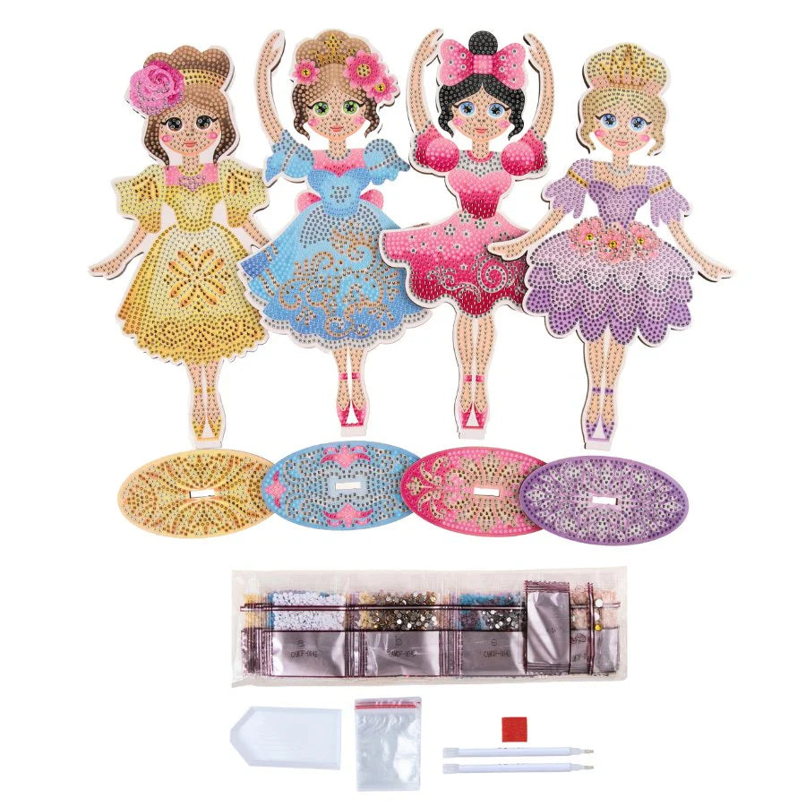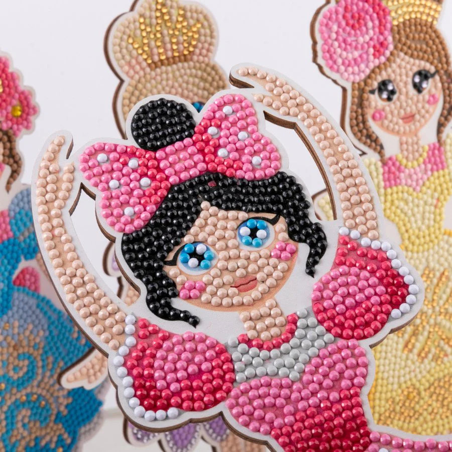 Create your own beautiful Diamond Art Ballerinas with this set of 4 MDF figurines in pretty pastel colours. These pre-printed dancers come with a numbered template, so all you have to do is pick up the included tool and start placing the coloured resin gems on the corresponding numbered dots. It's a relaxing and therapeutic craft activity that is suitable for adults and children alike. Once you've completed your ballerinas, you can display them proudly in your home or give them as beautiful gifts to your loved ones.