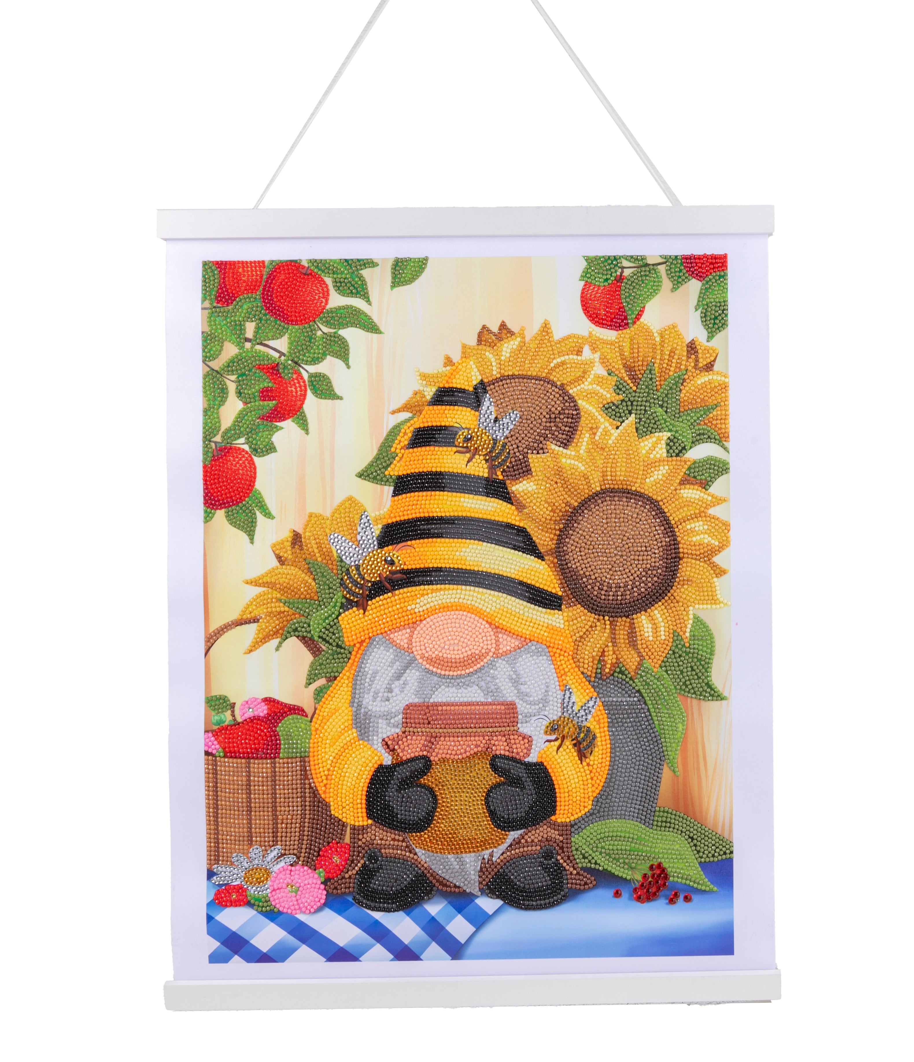 Honey Bee Gnome - Diamond Art Scroll 35x45cm - Partial Drill