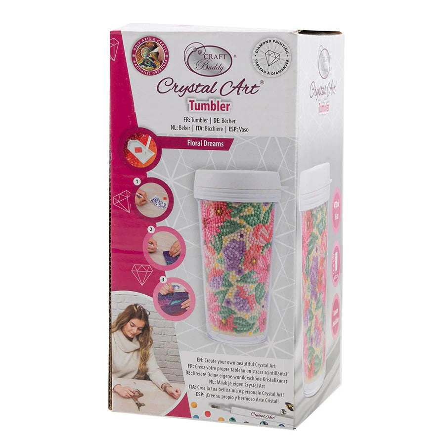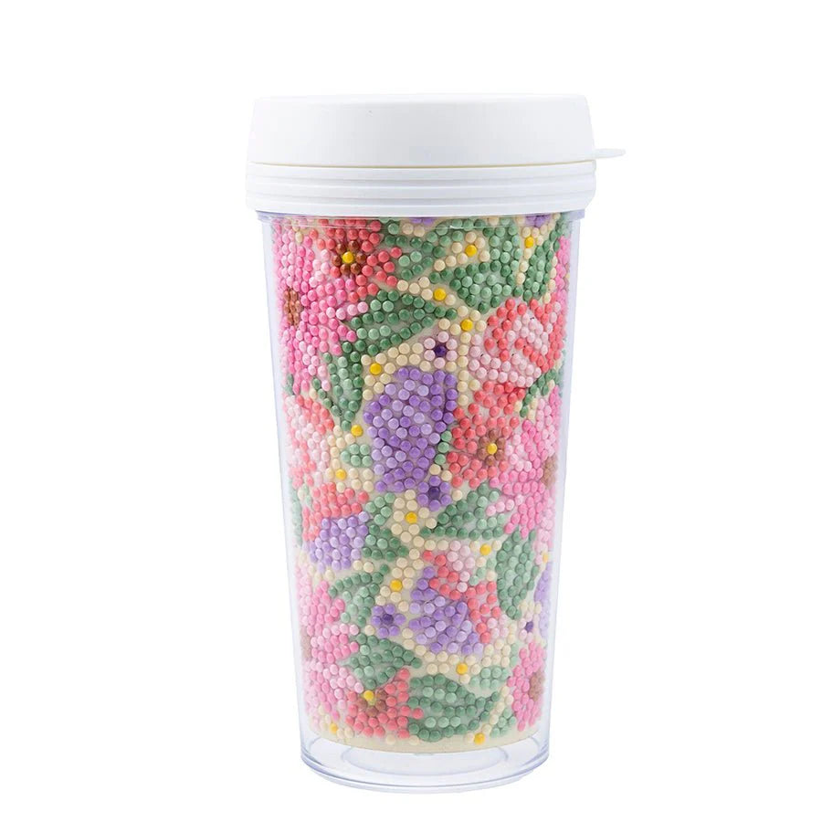 Introducing "Floral Dreams" Crystal Art cold drink Tumbler with a beautiful Summer design. This captivating kit includes a reusable cup that allows you to showcase your completed crystal art piece. The 470ml-capacity cold cup is equipped with an 'open' fastening, making it ideal for reducing the risk of spillages while you're on the go!